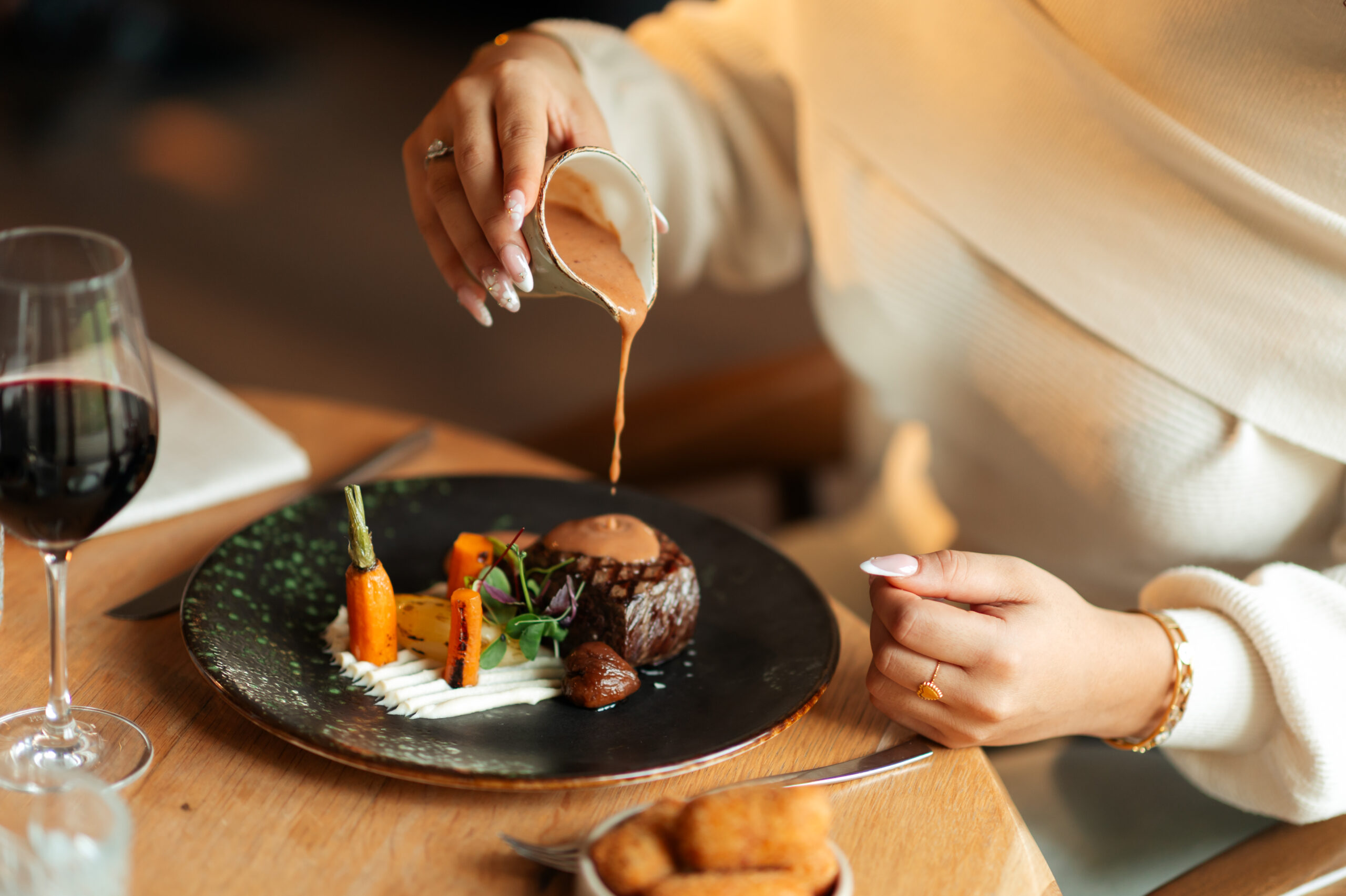 Met kastanje | witloof | bospeen | truffel aardappelkroket | grand veneur saus